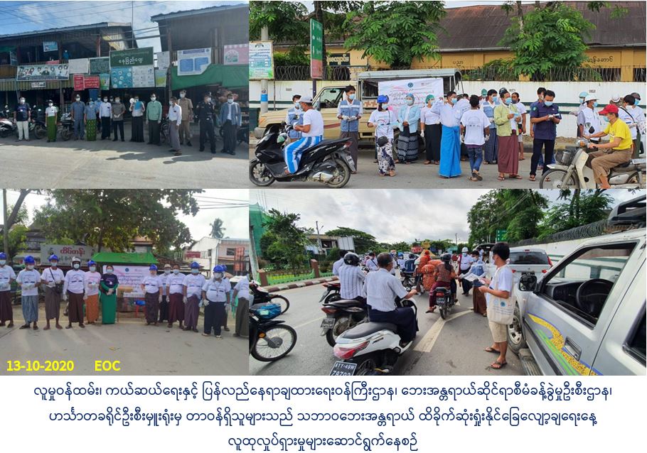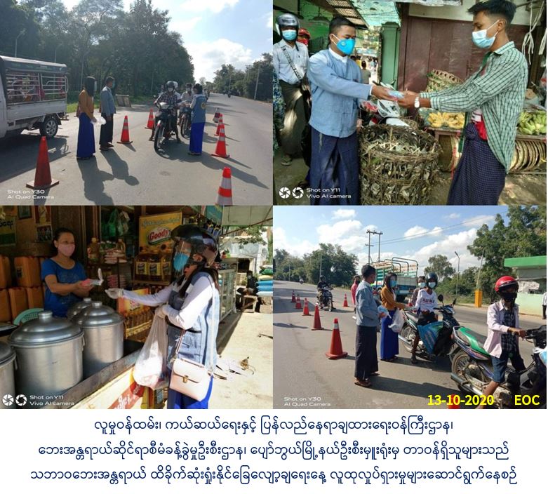 လူမှုဝန်ထမ်း၊ ကယ်ဆယ်ရေးနှင့် ပြန်လည်နေရာချထားရေးဝန်ကြီးဌာန၊ ဘေးအန္တရာယ်ဆိုင်ရာစီမံခန့်ခွဲမှုဦးစီးဌာန၊ ပုလောမြို့နယ်ဦးစီးမှူးရုံးမှ တာဝန်ရှိသူများသည် ၂၀၂၀ပြည့်နှစ် အပြည်ပြည်ဆိုင်ရာသဘာ၀ဘေးအန္တရာယ်ထိခိုက်ဆုံးရှုံးနိုင် ခြေလျှာ့ချရေးနေ့အထိမ်းအမှတ်ကို ဂုဏ်ပြုသောအားဖြင့် (၁၃-၁၀-၂၀၂၀) ရက်နေ့ ည (၁၆:၀၀) နာရီအချိန်တွင် ပြန်ကြားရေးနှင့်ပြည်သူ့ဆက်ဆံရေးဦးစီးဌာန၊ မီးသတ်ဦးစီးဌာန၊ အားကစားနှင့်ကာယပညာဦးစီးဌာန၊ မြို့နယ်ရဲတပ်ဖွဲ့တို့နှင့် ပူးပေါင်း၍ ပုလောမြို့နယ်တံတားထိပ်တွင် IDDRRစတစ်ကာပါ mask များနှင့် Disposable face mask များဝေငှခဲ့ပါကြောင်း သတင်းရရှိပါသည်။ Source: ပုလောမြို့နယ်ဦးစီးမှူးရုံး (ဘစမ) #ha_otr #tny_oct2020