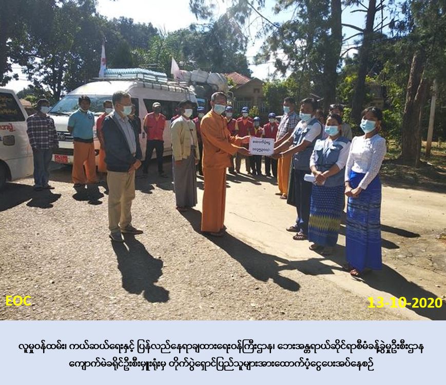 လူမှုဝန်ထမ်း၊ ကယ်ဆယ်ရေးနှင့် ပြန်လည်နေရာချထားရေးဝန်ကြီးဌာန၊ ဘေးအန္တရာယ်ဆိုင်ရာ စီမံခန့်ခွဲမှုဦးစီးဌာန၊ ကျောက်မဲခရိုင်ဦးစီးမှူးရုံးမှ တာဝန်ရှိသူများသည် (၁၁-၁၀-၂၀၂၀)ရက်နေ့၌ ကျောက်မဲမြို့နယ်အတွင်း တိုက်ပွဲများဖြစ်ပွားမှုကြောင့် ကျောက်မဲမြို့နယ်၊ နောင်ရှင်ကျေး ရွာအုပ်စု (ကောင်းခမ်း၊ ကုန်းဟတ်၊ကုန်းစုံ၊ ဆမ်းပူးကျေးရွာ)၊ ပန်စံ(ဝိုး)ကျေးရွာ အုပ်စု(ဟုန်းလိုင်းကျေးရွာ)၊ ခန့်ခဲကျေးရွာအုပ်စု(ဟိုနမ့်၊ ကောင်းအိုက်ကျေးရွာ)တို့မှ ခဲရှင်ဘုန်းတော်ကြီးကျောင်းနှင့် ဟိုနမ့်ဘုန်းတော်ကြီးကျောင်းသို့ ထမ်မံရောက်ရှိလာသော အိမ်ထောင်စု(၉၆)စု၊ လူဦးရေ (၄၉၃)ဦးအတွက် ဆန်ရိက္ခာ (၇)ရက်စာ ဖိုးငွေ(၁,၀၃၅,၃၀၀/-)ကျပ်အား (၁၃-၁၀-၂၀၂၀)ရက် (၀၉:၃၀)နာရီအချိန်တွင် ပြည်သူ့ လွှတ်တော်ကိုယ်စားလှယ်၊ ကျောက်မဲမြို့နယ်အုပ်ချုပ်ရေးမှူးတို့အား လွှဲပြောင်းပေးအပ်ခဲ့ပြီး ကျောက်မဲမြို့နယ် ကြက်ခြေနီသူနာပြုတပ်ဖွဲ့၊ ပရဟိတလူမှုအဖွဲ့အစည်းများနှင့် ပူးပေါင်း ချိတ်ဆက်၍ … Read more