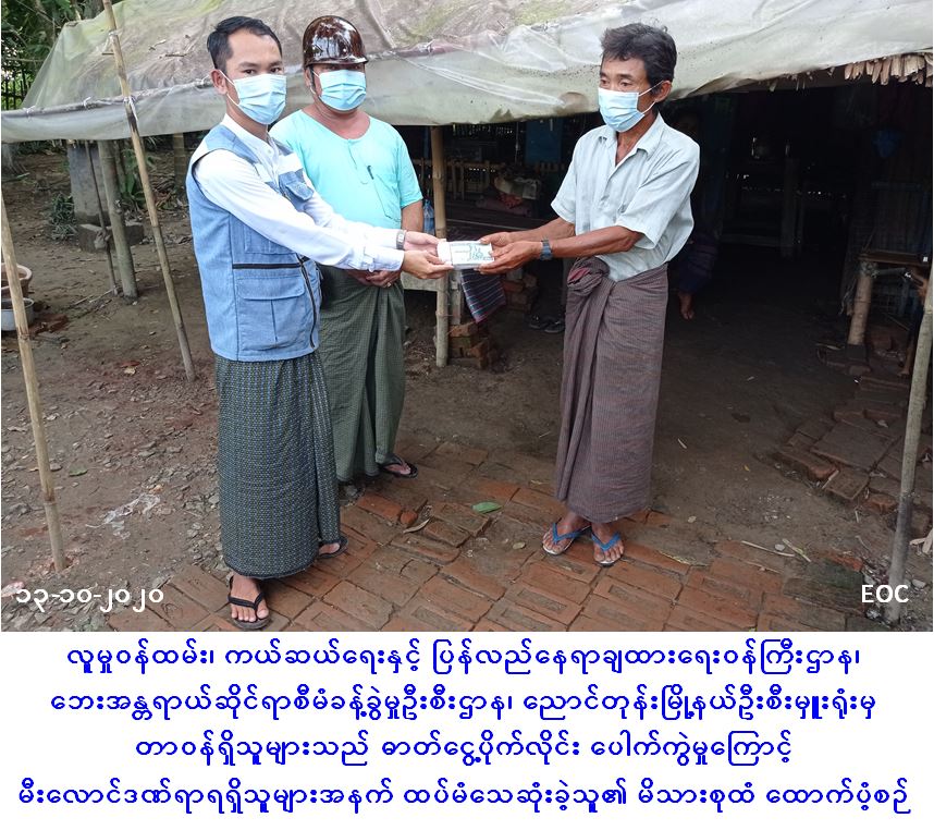 လူမှုဝန်ထမ်း၊ ကယ်ဆယ်ရေးနှင့် ပြန်လည်နေရာချထားရေးဝန်ကြီးဌာန၊ ဘေးအန္တရာယ်ဆိုင်ရာစီမံခန့်ခွဲမှုဦးစီးဌာန၊ ညောင်တုန်းမြို့နယ်ဦးစီးမှူးရုံးမှ တာဝန်ရှိသူများသည် ညောင်တုန်းမြို့နယ်၊ ကညင်ကောက်ကြီးကျေးရွာအုပ်စု၊ ရွာသစ်ကုန်းကျေးရွာ ရန်ကုန်-ပုသိမ်ကားလမ်းမဘေးရှိ ညောင်တုန်းမြို့အမှတ်(၂)ရေနံနှင့်သဘာဝဓာတ်ငွေ့စက်ရုံမှ ညောင်တုန်း-ကန်ကြီးထောင့် သွယ်တန်းထားသော ဓာတ်ငွေ့ပိုက်လိုင်း ပေါက်ကွဲမှုကြောင့် မီးလောင်ဒဏ်ရာရရှိသူများအနက်မှ ထပ်မံသေဆုံးသူ (၁) ဦးအတွက် ထောက်ပံငွေ (၃၀၀၀၀၀/-) ကျပ်တိတိအား (၁၃-၁၀-၂၀၂၀) ရက်နေ့၊ (၁၅:၀၀) နာရီအချိန်တွင် သေဆုံးသူ၏မိသားစုထံ လက်ဝယ်အရောက် ကွင်းဆင်းထောက်ပံ့ပေးအပ်ခဲ့ကြောင်း သတင်းရရှိပါသည်။ #ha_otr #ayy_oct2020 Source: ညောင်တုန်းမြို့နယ်ဦးစီးမှူးရုံး (ဘစမ)