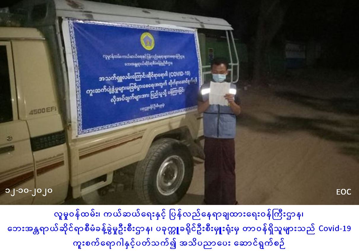 Covid-19 ကူးစက်ရောဂါနှင့်ပတ်သက်၍ အသိပညာပေး ဆောင်ရွက်မှုသတင်း
