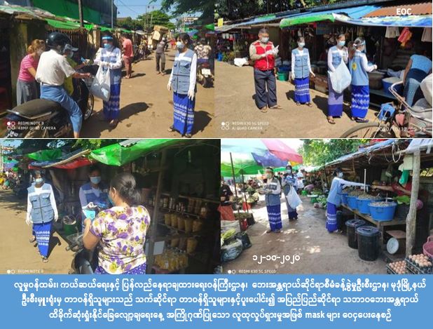 လူမှုဝန်ထမ်း၊ ကယ်ဆယ်ရေးနှင့် ပြန်လည်နေရာချထားရေးဝန်ကြီးဌာန၊ ဘေးအန္တရာယ်ဆိုင်ရာ စီမံခန့်ခွဲမှုဦးစီးဌာန၊ မုဒုံမြို့နယ်ဦးစီးမှူးရုံးမှ တာဝန်ရှိသူများသည် (၁၂-၁၀-၂၀၂၀) ရက် နေ့၊ (၀၉:၀၀) နာရီအချိန်တွင် မုဒုံမြို့နယ်အတွင်းရှိ မြို့မ(၄)ရပ်ကွက်၊ရွှေဟင်္သာစျေး၌ အပြည်ပြည်ဆိုင်ရာ သဘာဝဘေးအန္တရာယ်ထိခိုက်ဆုံးရှုံးနိုင်ခြေလျော့ချရေးနေ့ အကြိုဂုဏ်ပြုသောအားဖြင့် လူထုလှုပ်ရှားမှု ဆောင်ရွက်ရာတွင် မြို့နယ်အထွေထွေအုပ်ချုပ်ရေးဦးစီးဌာန၊ မြို့နယ် စည်ပင်သာယာရေးအဖွဲ့၊ မြို့နယ်ကြက်ခြေနီအသင်းတို့နှင့် ပူးပေါင်း၍ IDDR Day အထိမ်းအမှတ် mask များအား ဝေငှခဲ့ကြောင်း သတင်းရရှိပါသည်။ #ar #mon_oct2020 Source: မုဒုံမြို့နယ်ဦးစီးမှူးရုံး (ဘစမ)