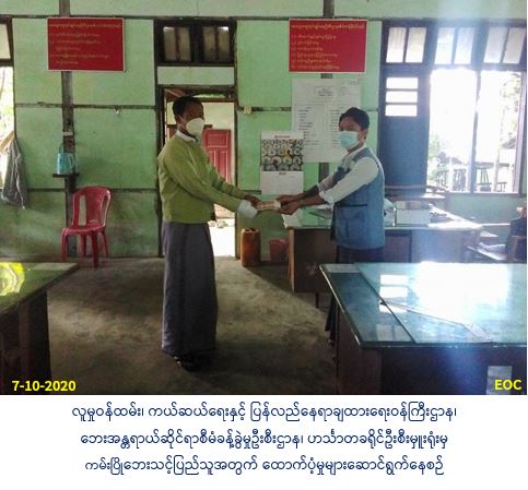 လူမှုဝန်ထမ်း၊ ကယ်ဆယ်ရေးနှင့် ပြန်လည်နေရာချထားရေးဝန်ကြီးဌာန၊ ဘေးအန္တရာယ်ဆိုင်ရာစီမံခန့်ခွဲမှုဦးစီးဌာန၊ ဟင်္သာတခရိုင်ဦးစီးမှူးရုံးမှ တာဝန်ရှိသူများသည် (၃၀-၉-၂၀၂၀) ရက်နေ့၌ ဇလွန်မြို့နယ်၊ ရေလဲအုပ်စု၊ ရေလဲကျေးရွာတွင် ဖြစ်ပွားခဲ့သော ကမ်းပြိုဘေးကြောင့် ကြိုတင်ဖျက်သိမ်းပြောင်းရွှေ့ခဲ့သည့် နေအိမ် (၈) လုံး၊ အိမ်ထောင်စု (၈)စုမှ လူဦးရေ (၃၃) ဦးအတွက် ဆန်ရိက္ခာ(၇)ရက်စာဖိုးထောက်ပံ့ငွေ (၆၉၃၀၀/-) ကျပ်နှင့် အိမ်ဆောက်ပစ္စည်းဖိုးထောက်ပံ့ငွေ (၈၀၀၀၀၀/-)ကျပ်၊ စုစုပေါင်းရန်ပုံငွေ (၈၆၉၃၀၀/-) ကျပ်အား (၇-၁၀-၂၀၂၀) ရက်နေ့ (၁၃:၀၀)နာရီ အချိန်တွင် ဇလွန်မြို့နယ်အထွေထွေအုပ်ချုပ် ရေးဦးစီးဌာနမှ တာ၀န်ရှိသူများထံသို့ လွှဲပြောင်းပေးအပ်ခဲ့ပါကြောင်း သတင်းရရှိပါသည်။ Source: … Read more