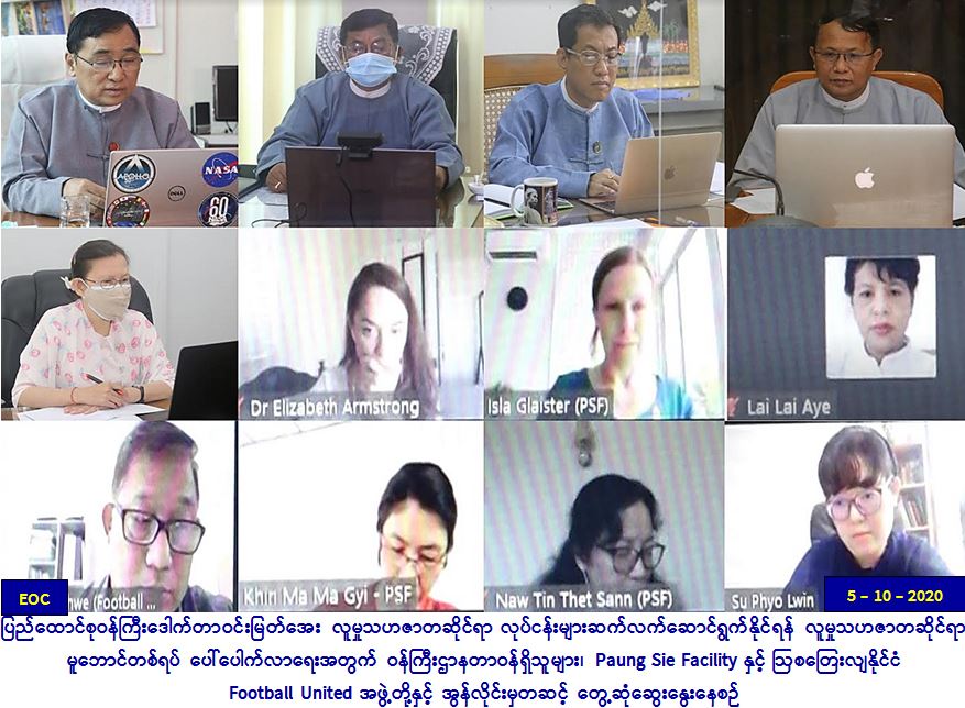 အောက်တိုဘာလ (၅) ရက်၊ ၂၀၂၀ ပြည့်နှစ် ပြည်ထောင်စုဝန်ကြီးဒေါက်တာဝင်းမြတ်အေးသည် လူမှုသဟဇာတဆိုင်ရာ လုပ်ငန်းများဆက်လက်ဆောင်ရွက်နိုင်ရန် လူမှုသဟဇာတဆိုင်ရာ မူဘောင် တစ်ရပ် ပေါ်ပေါက်လာရေး ယနေ့နံနက်ပိုင်းက ဝန်ကြီးဌာနတာဝန်ရှိသူများ၊ Paung Sie Facility နှင့် ဩစတြေးလျနိုင်ငံ Football United အဖွဲ့တို့နှင့် အွန်လိုင်းမှတဆင့် တွေ့ဆုံဆွေးနွေးခဲ့ပါသည်။ ထိုသို့တွေ့ဆုံရာတွင် ပြည်ထောင်စုဝန်ကြီးက မြန်မာနိုင်ငံအနေဖြင့် တရားဥပဒေ စိုးမိုးရေးနှင့် လူမှုစီးပွားဖွံ့ဖြိုးတိုးတက်ရေး၊ အမျိုးသားရင်ကြားစေ့ရေးနှင့် ပြည်တွင်းငြိမ်းချမ်းရေး၊ ဒီမိုကရေစီဖက်ဒရယ်ပြည်ထောင်စုတည်ဆောက်ရေး ဦးတည်ချက်များဖြင့် ငြိမ်းချမ်းရေးနှင့် ဖွံ့ဖြိုးတိုးတက်ရေးကို ဆောင်ရွက် လျက်ရှိကြောင်း၊ နိုင်ငံအတွင်း ရေရှည်ပဋိပက္ခ … Read more