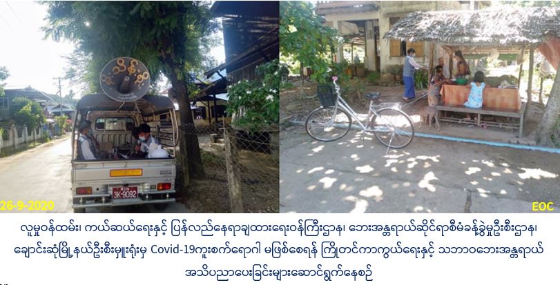 Covid-19ကူးစက်ရောဂါ မဖြစ်စေရန် ကြိုတင်ကာကွယ်ရေးနှင့် သဘာဝဘေးအန္တရာယ် အသိပညာပေးခြင်းများ ဆောင်ရွက်မှု သတင်း