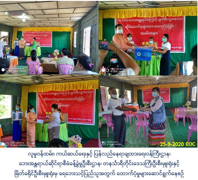 လူမှုဝန်ထမ်း၊ ကယ်ဆယ်ရေးနှင့် ပြန်လည်နေရာချထားရေးဝန်ကြီးဌာန၊ ဘေးအန္တရာယ်ဆိုင်ရာစီမံခန့်ခွဲမှုဦးစီးဌာန၊ တနင်္သာရီတိုင်းဒေသကြီးဦးစီးမှူးရုံးနှင့် မြိတ်ခရိုင်ဦးစီးမှူးရုံးမှ တာဝန်ရှိသူများသည် (၂၅-၉-၂၀၂၀) ရက်နေ့၊ (၁၃:၃ဝ) နာရီအချိန် ၌ မြိတ်မြို့နယ်၊ သဗျာကျေးရွာတွင် ဖြစ်ပွားခဲ့သော ရေဘေးကြောင့် လုံး၀ပျက်စီးအိမ်ခြေ (၂) လုံးအတွက် အိမ်ဆောက်ပစ္စည်းဖိုး ထောက်ပံ့ငွေ (၂၀၀,၀၀၀/-)ကျပ်၊ တစိတ်တစ်ပိုင်းပျက်စီးနေအိမ်(၉)လုံးအတွက် အိမ်ဆောက်ပစ္စည်းဖိုးထောက်ပံ့ငွေ (၃၆၀,၀၀၀/-)ကျပ်၊ ဘေးသင့်ပြည်သူ (၅၃) ဦးအတွက် ဆန်ရိက္ခါ(၇)ရက်စားဖိုးထောက်ပံ့ငွေ (၁၁၃,၀၀၀/)ကျပ်နှင့် လုံး၀ပျက်စီး အိမ်ခြေ(၂)လုံးအတွက် ကယ်ဆယ်ရေးပစ္စည်း (၁၇)မျိုးပါ အိမ်ထောင်စု(၂)စုစာတို့အား (၂၅-၉- ၂၀၂၀) ရက်နေ့ (၁၄:၃၀)ချိန်တွင် တနင်္သာရီတိုင်းဒေသကြီးအစိုးရအဖွဲ့၊ … Read more