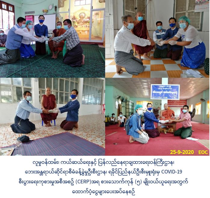 လူမှုဝန်ထမ်း၊ ကယ်ဆယ်ရေးနှင့် ပြန်လည်နေရာချထားရေးဝန်ကြီးဌာန၊ ဘေးအန္တရာယ်ဆိုင်ရာစီမံခန့်ခွဲမှုဦးစီးဌာန၊ ရခိုင်ပြည်နယ်ဦးစီးမှူးရုံးမှ တာဝန်ရှိသူများသည် COVID-19 စီးပွားရေးကုစားမှုအစီအစဥ် (CERP)အရ စားသောက်ကုန် (၅) မျိုး ဝယ်ယူရန် အိမ်ထောင်စု (၁) စုလျှင် (၄၀၀၀၀/-) ကျပ်နှုန်းဖြင့် စစ်တွေမြို့နယ်၊ မဏိရတနာကျောင်းတိုက်တွင် ရောက်ရှိခိုလှုံနေသော အိမ်ထောင်စု (၄၃)စု၊ လူဦးရေ (၁၉၄)ဦးအတွက် ထောက်ပံ့ငွေ (၁၇၂၀၀၀၀/-)ကျပ် ကိုလည်းကောင်း၊ ဓမ္မရာမကျောင်းတိုက်တွင် ရောက်ရှိခိုလှုံနေသော အိမ်ထောင်စု (၉၁)စု၊ လူဦးရေ (၄၀၂)ဦးအတွက် ထောက်ပံ့ငွေ (၃၆၄၀၀၀၀/-)ကျပ်ကိုလည်းကောင်း၊ ဘုရားများသိမ်တွင် ရောက်ရှိခိုလှုံနေသော အိမ်ထောင်စု (၈၆)စု … Read more