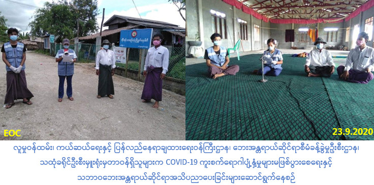 COVID-19 ရောဂါကူးစက်ပျံ့နှံ့မှုများမဖြစ်ပွားစေရန်အသိပညာပေးခြင်းနှင့် သဘာဝဘေးအသိပညာပေးခြင်းများဆောင်ရွက်မှုသတင်း