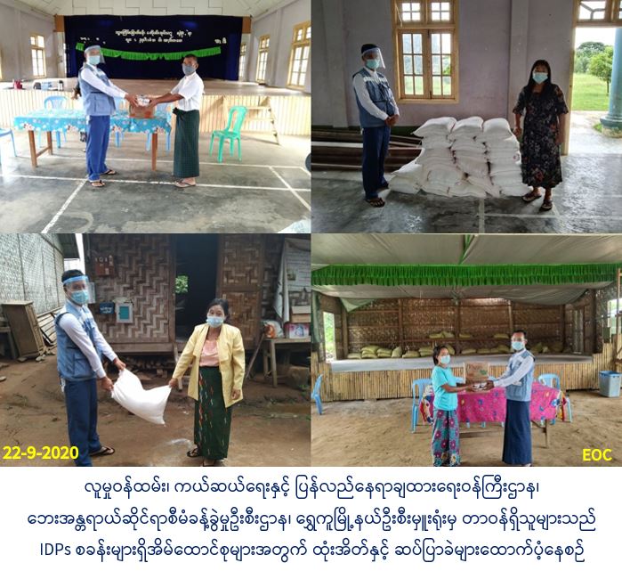 လူမှုဝန်ထမ်း၊ ကယ်ဆယ်ရေးနှင့် ပြန်လည်နေရာချထားရေးဝန်ကြီးဌာန၊ ဘေးအန္တရာယ်ဆိုင်ရာစီမံခန့်ခွဲမှုဦးစီးဌာန၊ ရွှေကူမြို့နယ်ဦးစီးမှူးရုံးမှ တာဝန်ရှိသူများသည် (၂၂-၉-၂၀၂၀) ရက်နေ့၊ နံနက် (၁၀း၃၀) နာရီအချိန်တွင် ရွှေကူမြို့၊ နှစ်ခြင်း IDPs စခန်းရှိ အိမ်ထောင်စု (၈၄) စု၊ လူဦးရေ (၃၀၆) ဦးတို့အတွက် ထုံး (၁၀) အိတ်၊ ဆပ်ပြာ (၃၀၆) ခဲနှင့် ကက်သလစ်IDPsစခန်းရှိ အိမ်ထောင်စု (၄၂) စု၊ လူဦးရေ (၁၇၆) ဦးတို့အတွက် ထုံး (၁၀) အိတ်၊ ဆပ်ပြာ (၁၇၆) ခဲ … Read more