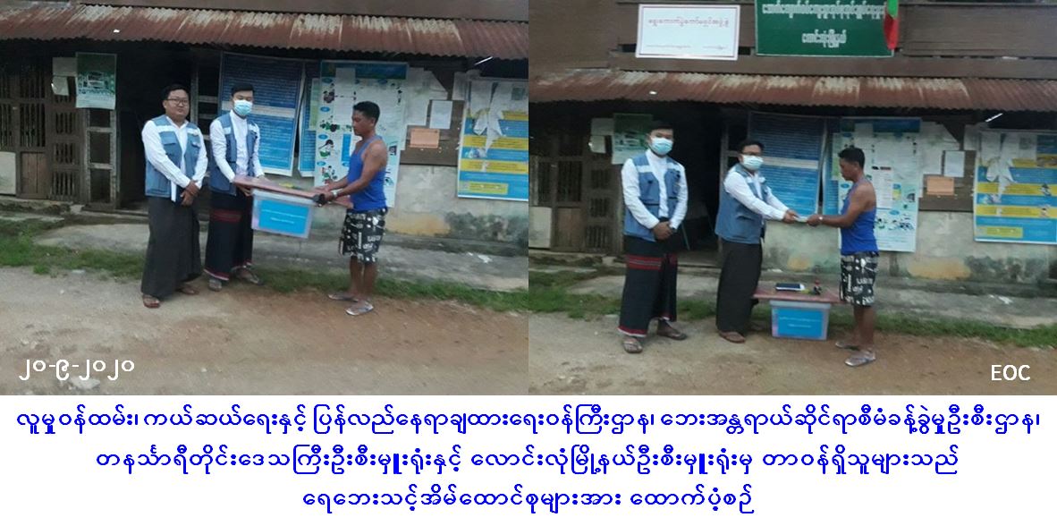 လူမှုဝန်ထမ်း၊ ကယ်ဆယ်ရေးနှင့် ပြန်လည်နေရာချထားရေးဝန်ကြီးဌာန၊ ဘေးအန္တရာယ်ဆိုင်ရာစီမံခန့်ခွဲမှုဦးစီးဌာန၊ မော်လမြိုင်ကျွန်းမြို့နယ်ဦးစီးမှူးရုံးမှ တာဝန်ရှိသူများသည် လပွတ္တာခရိုင်၊ မော်လမြိုင်ကျွန်းမြို့နယ်၊ နတ်မှူးကျေးရွာအုပ်စု၊ ဒေါင်းဥတိုကျေးရွာ၌ (၂၁-၉-၂၀၂၀)ရက်နေ့တွင် မိုးသည်းထန်စွာရွာသွန်းပြီး လေပြင်းတိုက်ခတ်မှုကြောင့် ပြိုကျပျက်စီးခဲ့သော နေအိမ်(၁)လုံး၊ အိမ်ထောင်စု(၁)စုမှ ဘေးသင့်လူဦးရေ(၇)ဦးအတွက် ကယ်ဆယ်ရေးပစ္စည်း(၁၆)မျိုးပါ(၁)ပုံး၊ အိမ်ဆောက်ပစ္စည်းဘိုး(၁၀၀၀၀၀/-)ကျပ်၊ ဆန်ရိက္ခာ(၇)ရက်စာဘိုး (၁၄၇၀၀/-)ကျပ်၊ စုစုပေါင်း(၁၁၄၇၀၀/-)ကျပ်တိတိအား မော်လမြိုင်ကျွန်းမြို့နယ် အထွေထွေအုပ်ချုပ်ရေးဦးစီးဌာန၌ (၂၂-၉-၂၀၂၀)ရက်နေ့၊ (၁၁:၀၀) နာရီအချိန်တွင် မြို့နယ်အုပ်ချုပ်ရေးမှူး၊ ကျေးရွာအုပ်ချုပ်ရေးမှူး၊ ရပ်ကျေးစာရေးတို့နှင့်အတူ ဘေးသင့်ပြည်သူများထံ ထောက်ပံ့ပေးအပ်ခဲ့ကြောင်း သတင်းရရှိပါသည်။ #ha_sgw #ayy_sep2020 Source: မော်လမြိုင်ကျွန်းမြို့နယ်ဦးစီးမှူးရုံး (ဘစမ)