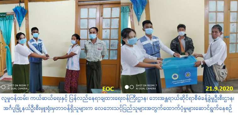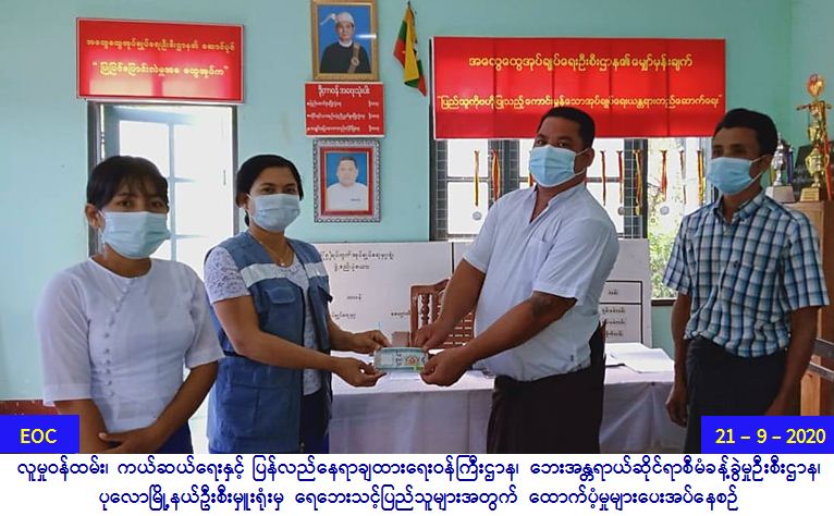 လူမှုဝန်ထမ်း၊ ကယ်ဆယ်ရေးနှင့် ပြန်လည်နေရာချထားရေးဝန်ကြီးဌာန၊ ဘေးအန္တရာယ်ဆိုင်ရာစီမံခန့်ခွဲမှုဉီးစီးဌာန၊ ပဲခူး တိုင်းဒေသကြီးဦးစီးမှူးရုံးနှင့် ကဝမြို့နယ်ဦးစီးမှူးရုံးမှ တာဝန်ရှိသူများသည် (၁၈/၁၉/၂၀-၉-၂၀၂၀)ရက်နေ့၌ ပဲခူးတိုင်း ဒေသကြီး၊ ပဲခူးခရိုင်၊ ကဝမြို့နယ်အတွင်းရှိ ကျေးရွာ(၁၀)ရွာတွင် ဖြစ်ပွားခဲ့သောရေဘေးမှ ရေဘေးသင့်အိမ်ထောင်စု (၁၅၆၉)စုအတွက် ဆပ်ပြာ(၁၅၆၉)တောင့်၊ လူဦးရေ (၇၁၉၄) ဦးအတွက် ဆန်ရိက္ခာဖိုးထောက်ပံ့ငွေ (၁၅၁၀၇၄၀ဝ/-)ကျပ်၊ Mask (၁၄၃၈၈)ခုတို့အား (၂၁-၉-၂၀၂၀) ရက်နေ့ (၁၅:၀၀)နာရီအချိန်တွင် ကဝမြို့နယ်၊ ပြည်သူ့လွှတ်တော်ကိုယ်စားလှယ်၊ တိုင်း ဒေသကြီးလွှတ်တော်ကိုယ်စားလှယ် ဦးမျိုးခိုင်၊ ကဝမြို့နယ်အထွေထွေအုပ်ချုပ်ရေးဦးစီးဌာနမှ မြို့နယ်အုပ်ချုပ်ရေးမှူး၊ စိုက်ပျိုးရေးဦးစီးဌာန၊ ပြန်ကြားရေးနှင့် ပြည်သူ့ ဆက်ဆံရေးဦးစီးဌာနနှင့်အတူ သက်ဆိုင်ရာကျေးရွာအုပ်ချုပ်ရေးမှူးများထံသို့ … Read more