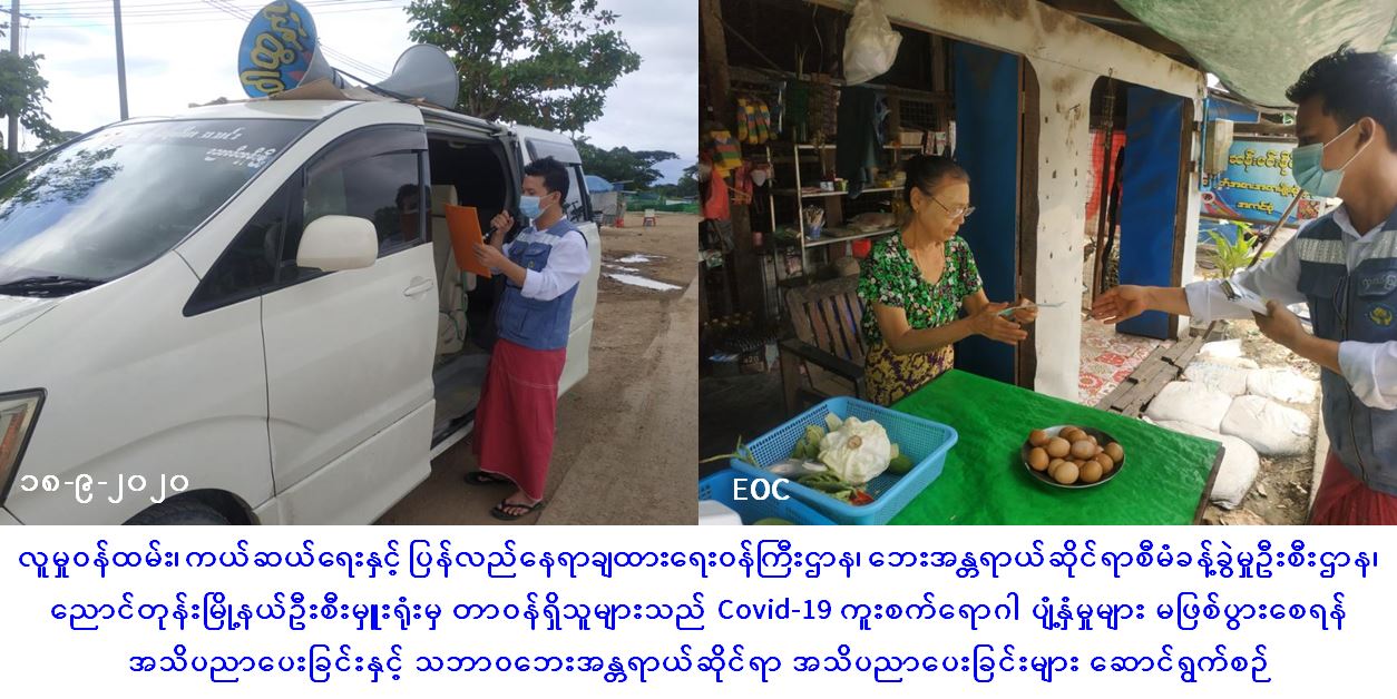 Covid-19 ကူးစက်ရောဂါ ပျံ့နှံမှုများ မဖြစ်ပွားစေရန် အသိပညာပေးခြင်းနှင့် သဘာဝဘေးအန္တရာယ်ဆိုင်ရာ အသိပညာပေးခြင်းများ ဆောင်ရွက်မှုသတင်း