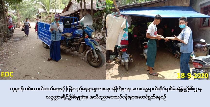COVID-19 ကူးစက်ရောဂါနှင့်ပတ်သက်၍ အသိပညာပေးခြင်းနှင့် သဘာဝဘေးအန္တရာယ်ဆိုင်ရာ အသိပညာပေးခြင်းများဆောင်ရွက်မှုသတင်း