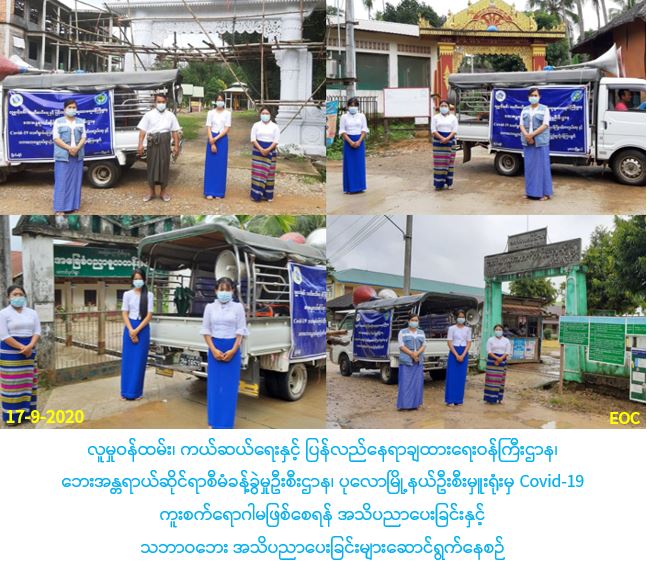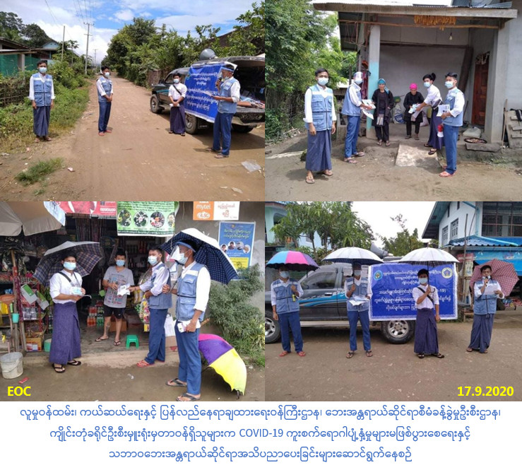 Covid-19ကူးစက်ရောဂါ မဖြစ်စေရန် ကြိုတင်ကာကွယ်ရေးနှင့် သဘာဝဘေးအန္တရာယ် အသိပညာပေးခြင်းများ ဆောင်ရွက်မှု သတင်း