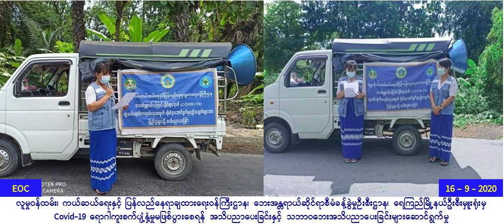 Covid-19 ရောဂါကူးစက်ပျံ့နှံ့မှုမဖြစ်ပွားစေရန် အသိပညာပေးခြင်းနှင့် သဘာဝဘေးအသိပညာပေးခြင်းများဆောင်ရွက်မှု သတင်း