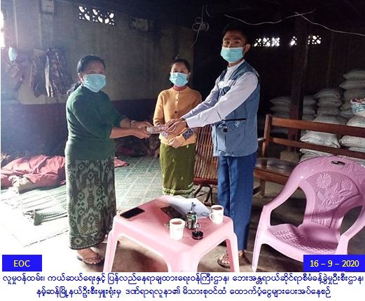 လူမှုဝန်ထမ်း၊ ကယ်ဆယ်ရေးနှင့် ပြန်လည်နေရာချထားရေးဝန်ကြီးဌာန၊ ဘေးအန္တရာယ်ဆိုင်ရာစီမံခန့်ခွဲမှုဦးစီးဌာန၊ ဗန်းမော်ခရိုင်ဦးစီးမှူးရုံးမှ တာဝန်ရှိသူများသည် (၁၆-၉-၂၀၂၀) ရက်နေ့၊ (၁၅:၄၀) နာရီအချိန်တွင် COVID-19 စီးပွားရေးကုစားမှုအစီအစဉ် (CERP)အရ စားသောက်ကုန်(၅)မျိုးဝယ်ယူရန် ဒုတိယအကြိမ်အဖြစ် အိမ်ထောင်စု(၁)စုလျှင် (၄၀,၀၀၀)ကျပ်နှုန်းဖြင့် မိုးမောက်မြို့၊ နှစ်ခြင်းIDPsစခန်းရှိ အိမ်ထောင်စု(၄၁၇)စု၊ လူဦးရေ(၂၀၀၃)ဦးနှင့် ကက်သလစ်(RC) IDPsစခန်းရှိ အိမ်ထောင်စု(၈၈)စု၊ လူဦးရေ(၄၁၄)ဦး၊ စုစုပေါင်းအိမ်ထောင်စု(၅၀၅)ဦး၊ လူဦးရေ(၂၄၁၇)ဦးတို့အတွက် စုစုပေါင်းထောက်ပံ့ငွေ(၂၀,၂၀၀,၀၀၀)ကျပ်တိတိအား IDPsစခန်းနေ ပြည်သူများ၏လက်ဝယ်အရောက် သွားရောက်ထောက်ပံ့ပေးအပ်ခဲ့ကြောင်း သတင်းရရှိပါသည်။ #otr #kcn_sep2020 Source: ဗန်းမော်ခရိုင်ဦးစီးမှူးရုံး (ဘစမ)