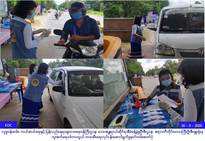 လူမှုဝန်ထမ်း၊ ကယ်ဆယ်ရေးနှင့် ပြန်လည်နေရာချထားရေးဝန်ကြီးဌာန၊ ဘေးအန္တရာယ်ဆိုင်ရာ စီမံခန့်ခွဲမှုဉီးစီးဌာန၊ ဧရာဝတီ တိုင်းဒေသကြီးဦးစီးမှူးရုံးမှ တာဝန်ရှိသူများသည် Covid-19 ကူးစက်ရောဂါ ဒုတိယလှိုင်းကြောင့် ကူးစက်မှုများ မဖြစ်ပွားစေရန်အတွက် ဧရာဝတီတိုင်းဒေသကြီး၊ ပုသိမ်မြို့၊ မြို့ဝင်တိုးဂိတ် (ကိုးဆူဂိတ်)၌ (၁၆-၉-၂၀၂၀)ရက်နေ့ (၀၈:၀၀)နာရီ အချိန်မှ (၁၄:၀၀)နာရီအချိန်အထိ သက်ဆိုင်ရာဌာနဆိုင်ရာများနှင့်အတူ ပူးပေါင်းအားဖြည့်ကူညီဆောင်ရွက်ခဲ့ပါကြောင်း သတင်းရရှိပါသည်။ #ar #ayy_sep2020 Source: ဧရာဝတီတိုင်းဒေသကြီးဦးစီးမှူးရုံး (ဘစမ)