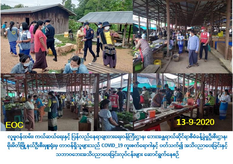 လူမှုဝန်ထမ်း၊ ကယ်ဆယ်ရေးနှင့် ပြန်လည်နေရာချထားရေးဝန်ကြီးဌာန၊ ဘေးအန္တရာယ် ဆိုင်ရာစီမံခန့်ခွဲမှုဦးစီးဌာန၊ မိုးမိတ်မြို့နယ်ဦးစီးမှူးရုံးမှ တာဝန်ရှိသူများသည် (၁၃-၉-၂၀၂၀) ရက်နေ့တွင် မဘိမ်းမြို့နယ်ဌာနဆိုင်ရာများနှင့် ပူးပေါင်း၍ မိုးမဘိမ်းမြို့၊ မြို့မဈေး၊ ကုန်းခါးဈေး၊ မြို့မရပ်ကွက်၊ တိုက်ကုန်းရပ်ကွက်၊ ကုန်းခါးရပ်ကွက်နှင့် နမ့်ပုံးပုံး ရပ်ကွက်တို့တွင် Covid-19 ရောဂါ ကူးစက်မှုမဖြစ်ပွားစေရန် ပြည်သူများနေထိုင်ရမည့် ကျန်းမာရေးအမူအကျင့်များ အသိပညာပေးဟောပြောခြင်း၊ အခြားသော သဘာဝဘေး များနှင့် ပတ်သက်သည့် ဆောင်ရန်/ရှောင်ရန်များကို ကျေးရွာနေပြည်သူတို့အား အသိပညာ ပေးအစီအစဉ်ကို အသံချဲ့စက်အသုံးပြု၍ ဟောပြောခြင်း၊ နှာခေါင်းစည်း (Mask)များ ဖြန့်ဝေခြင်းနှင့် လက်ကမ်းစာစောင်များဖြန့်ဝေခြင်းလုပ်ငန်းတို့ကို ဆောင်ရွက်ခဲ့ကြောင်း … Read more