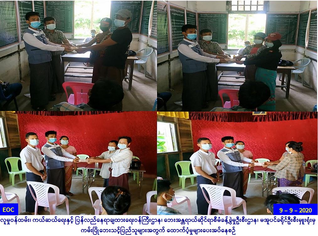 လူမှုဝန်ထမ်း၊ ကယ်ဆယ်ရေးနှင့်ပြန်လည်နေရာချထားရေးဝန်ကြီးဌာန၊ ဘေးအန္တရာယ်ဆိုင်ရာစီမံခန့်ခွဲမှုဦးစီးဌာန၊ မင်းဘူးခရိုင်ဦးစီးမှူးရုံးမှ တာဝန်ရှိသူများသည် မင်းဘူးခရိုင်၊ မင်းဘူး(စကု)မြို့နယ်၊ ကျောင်းကုန်းကျေးရွာတွင် (၈-၉-၂၀၂၀)ရက်နေ့၌ ဖြစ်ပွားခဲ့သော ဧရာဝတီမြစ်ရေတိုက်စား၍ ကမ်းပါးပြိုကျမည်ကို စိုးရိမ်မှုကြောင့် ကြိုတင်ပြောင်းရွှေ့အိမ်ခြေ(၃)လုံး၊ အိမ်ထောင်စု(၃)စုတို့အတွက် အိမ်ဆောက်ပစ္စည်းဖိုး(၃၀၀,၀၀၀ိ/-)၊ လူဦးရေ(၁၂)ဦးအတွက် ဆန်ရိက္ခါ(၇)ရက်စာ (၂၅,၂၀၀ိ/-)ကျပ်၊ စုစုပေါင်းထောက်ပံ့ငွေ(၃၂၅,၂၀၀ိ/-)အား (၁၀-၉-၂၀၂၀)ရက်နေ့၊ (၁၀:၀၀)အချိန်တွင် ကျေးရွာအုပ်စုအုပ်ချုပ်ရေးမှူးနှင့်အတူ ဘေးသင့်ပြည်သူများ လက်ဝယ်အရောက် သွားရောက်ထောက်ပံ့ပေးအပ်ခဲ့ကြောင်း သတင်းရရှိပါသည်။ #ha_rbe #mgy_sep2020 Source: မင်းဘူးခရိုင်ဦးစီးမှူးရုံး (ဘစမ)