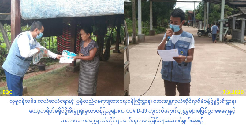 COVID-19 ကူးစက်ရောဂါပျံ့နှံ့မှုများမဖြစ်ပွားစေရန်နှင့် သဘာဝဘေးအန္တရာယ်ဆိုင်ရာ အသိပညာပေးခြင်းများဆောင်ရွက်မှုသတင်း
