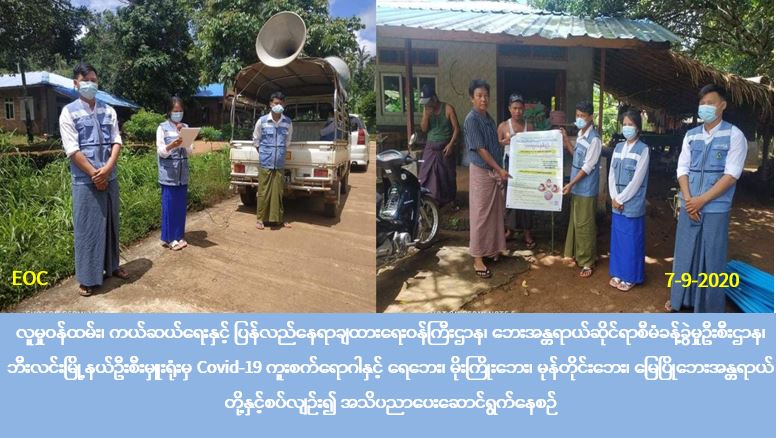 Covid-19 ကူးစက်ရောဂါနှင့်စပ်လျဉ်း၍ အသိပညာပေးခြင်းနှင့် သဘာဝဘေးအန္တရာယ်နှင့်စပ်လျဉ်းသည့် အသိပညာပေးခြင်းများ ဆောင်ရွက်မှုသတင်း