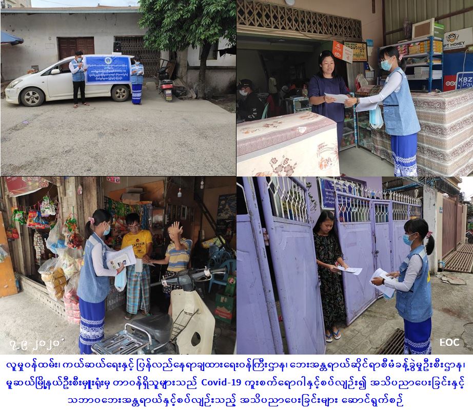 COVID-19 ကူးစက်ရောဂါပျံ့နှံ့မှုများမဖြစ်ပွားစေရန် အသိပညာပေးလုပ်ငန်းများဆောင်ရွက်မှုသတင်း