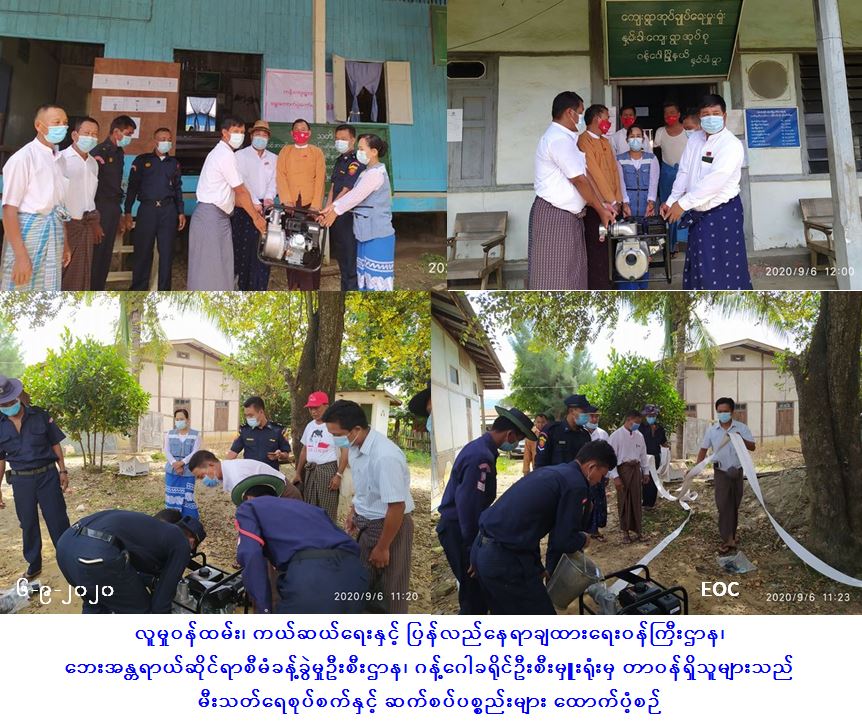 လူမှုဝန်ထမ်း၊ ကယ်ဆယ်ရေးနှင့် ပြန်လည်နေရာချထားရေးဝန်ကြီးဌာန၊ ဘေးအန္တရာယ်ဆိုင်ရာစီမံခန့်ခွဲမှုဦးစီးဌာန၊ ဂန့်ဂေါခရိုင်ဦးစီးမှူးရုံးမှ တာဝန်ရှိသူများသည် ဂန့်ဂေါခရိုင်၊ ဂန့်ဂေါမြို့နယ်အတွင်းရှိ မင်းရွာကျေးရွာ၊ ကန်ကျေးရွာ၊ မွှေ့လယ်ကျေးရွာ၊ နှမ်းခါးကျေးရွာနှင့် မြောက်ခင်ရန်းကျေးရွာများအတွက် မီးဘေးကြိုတင်ကာကွယ်ရေး ဆောင်ရွက်ရန် ကျေးရွာ (၁) ရွာလျှင် ငွေကျပ်(၅)သိန်းနှုန်းဖြင့် ကျေးရွာ(၅)ရွာအတွက် စုစုပေါင်းငွေကျပ် (၂၅) သိန်းဖြင့် မီးသတ်ရေစုပ်စက်နှင့် ဆက်စပ်ပစ္စည်းများဝယ်ယူပြီး အမျိုးသားလွှတ်တော်ကိုယ်စားလှယ်၊ တိုင်းဒေသကြီးလွှတ်တော် ကိုယ်စားလှယ်၊ မီးသတ်ဦးစီးဌာနမှ တာဝန်ရှိသူများနှင့်အတူ (၆-၉-၂၀၂၀) ရက်နေ့တွင် ကျေးရွာများသို့အရောက် သွားရောက်ထောက်ပံ့ပေးအပ်ခဲ့ကြောင်း သတင်းရရှိပါသည်။ #ha_fir #mgy_sep2020 Source: ဂန့်ဂေါခရိုင်ဦးစီးမှူးရုံး (ဘစမ)