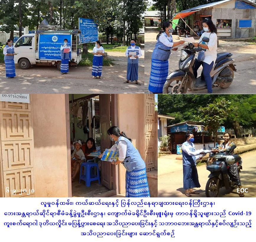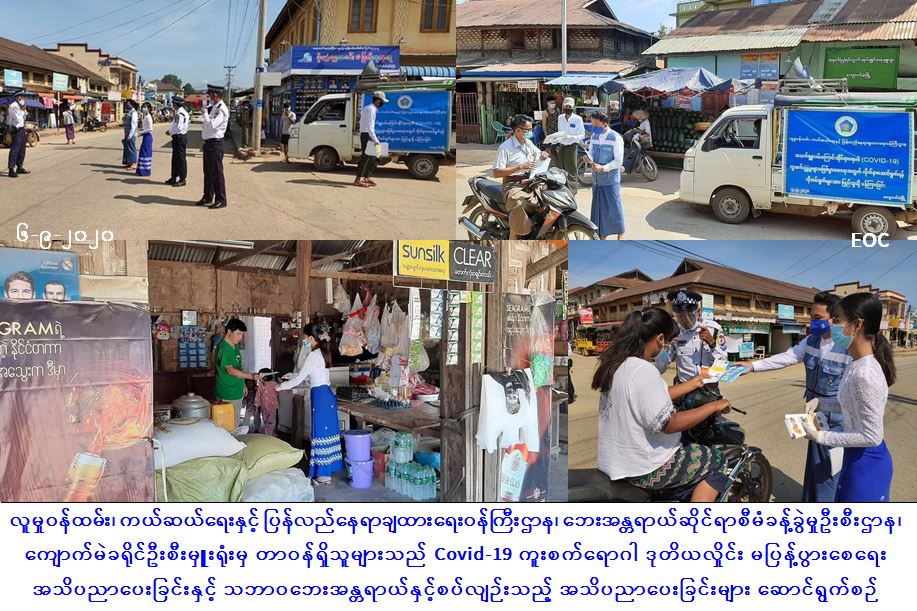 Covid-19 ကူးစက်ရောဂါနှင့်စပ်လျဉ်း၍ အသိပညာပေးခြင်းနှင့် သဘာဝဘေးအန္တရာယ်နှင့်စပ်လျဉ်းသည့် အသိပညာပေးခြင်းများ ဆောင်ရွက်မှုသတင်း