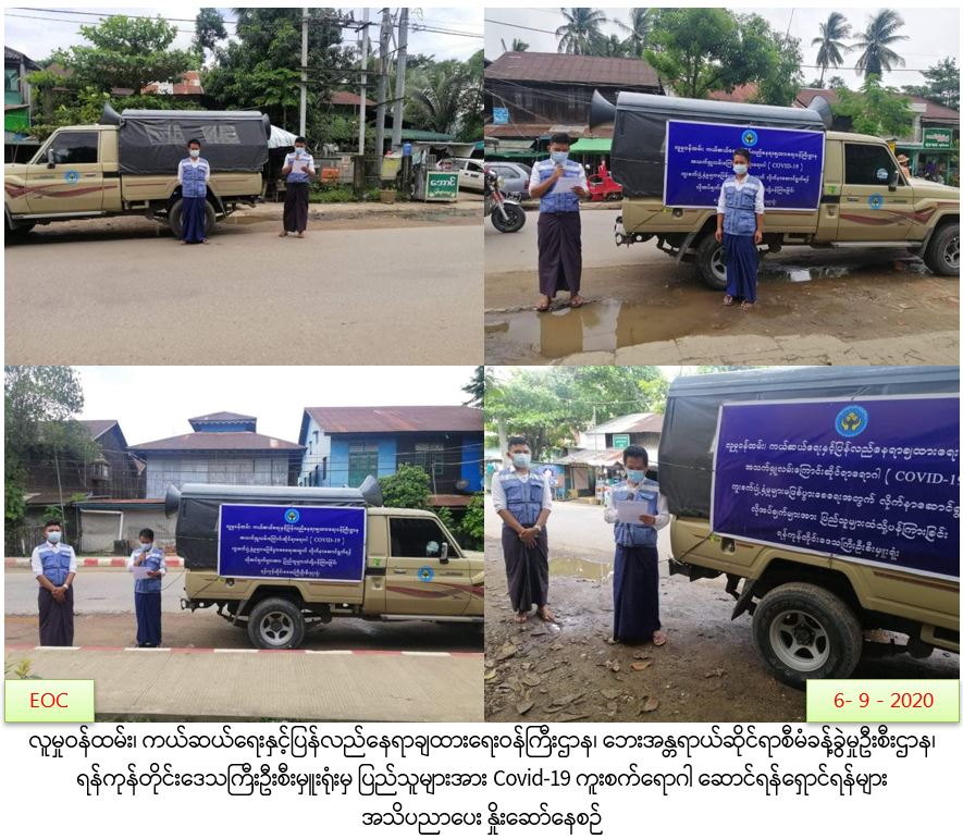 Covid-19ကူးစက်ရောဂါ မဖြစ်စေရန် ကြိုတင်ကာကွယ်ရေးနှင့် သဘာဝဘေးအန္တရာယ် အသိပညာပေးခြင်းများ ဆောင်ရွက်မှု သတင်း