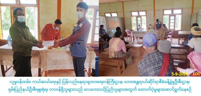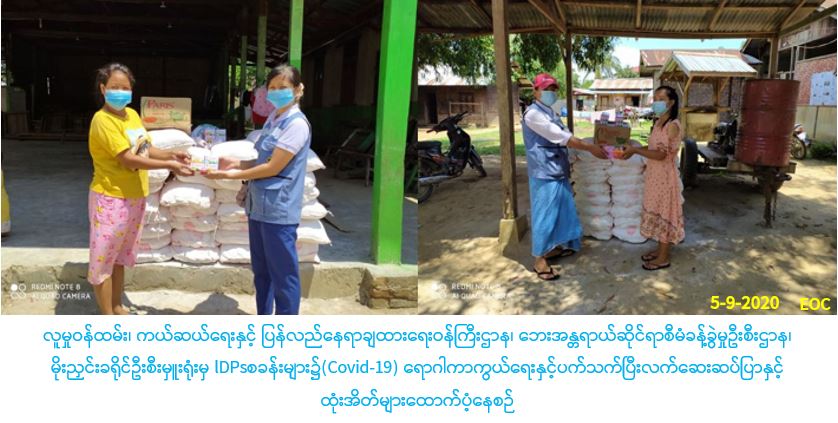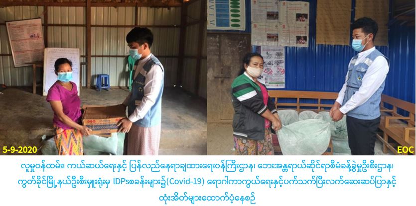 IDPs စခန်းများ၌(Covid-19) ရောဂါကာကွယ်ရေးနှင့်ပက်သက်ပြီး လက်ဆေးဆပ်ပြာနှင့်ထုံးအိတ်များထောက်ပံ့မှုသတင်း