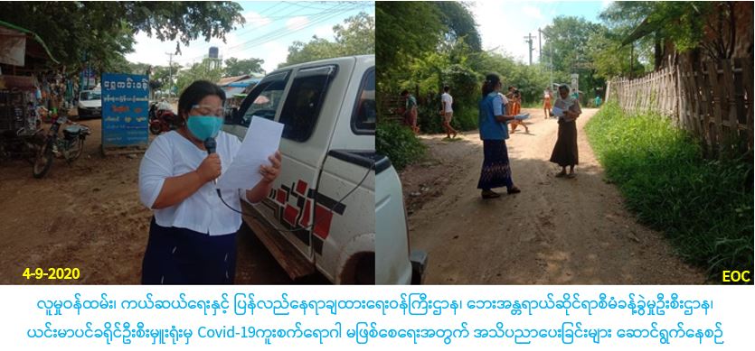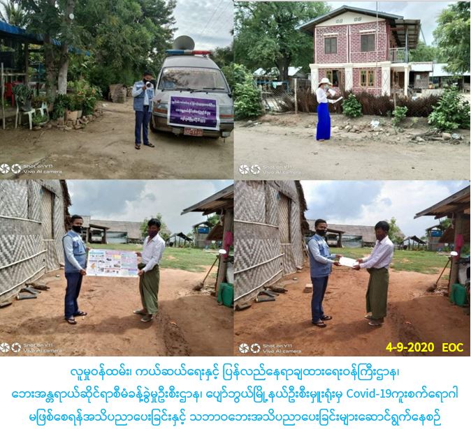 Covid-19ကူးစက်ရောဂါ မဖြစ်စေရန် အသိပညာပေးခြင်းနှင့် သဘာဝဘေးအသိပညာပေးခြင်းများဆောင်ရွက်မှုသတင်း