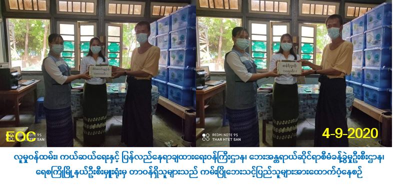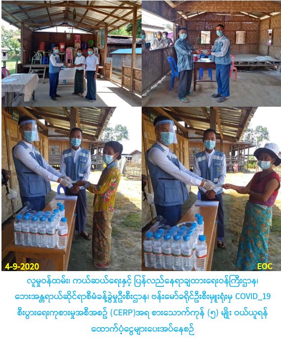 လူမှုဝန်ထမ်း၊ ကယ်ဆယ်ရေးနှင့် ပြန်လည်နေရာချထားရေးဝန်ကြီးဌာန၊ ဘေးအန္တရာယ်ဆိုင်ရာစီမံခန့်ခွဲမှုဦးစီးဌာန၊ ဗန်းမော်ခရိုင်ဦးစီးမှူးရုံးမှ တာဝန်ရှိသူများသည် COVID_19 စီးပွားရေးကုစားမှုအစီအစဥ် (CERP)အရ စားသောက်ကုန် (၅)မျိုး ဝယ်ယူရန် အိမ်ထောင်စု(၁)စုလျှင် (၄၀၀၀၀/-)နှုန်းဖြင့် မံစီမြို့နယ်၊ မိုင်းခေါင်ကျေးရွာရှိနှစ်ခြင်း Idps စခန်းတွင် အိမ်ထောင်စု(၃၈၆)စု၊ လူဦးရေ (၁၇၀၇)ဦးနှင့် ကက်သလစ် Idps စခန်းတွင် အိမ်ထောင်စု(၁၅၄)စု၊ လူဦးရေ(၇၃၂)ဦး၊ စုစုပေါင်းအိမ်ထောင်စု (၅၄၀)စု၊ လူဦးရေ (၂၄၃၉)ဦး၊ တို့အား စုစုပေါင်းထောက်ပံ့ငွေ (၂၁,၆၀၀,၀၀၀/-)ကျပ်ကို (၄-၉-၂၀၂၀)ရက်နေ့ (၁၄:၀၀) နာရီအချိန်တွင် ပြည်သူများ၏ လက်ဝယ်အရောက် ထောက်ပံ့ပေးအပ်ခဲ့ပါကြောင်း သတင်းရရှိပါသည်။ … Read more