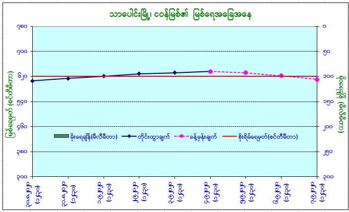 ငဝန်မြစ် စိုးရိမ်ရေမှတ်၌ တည်ရှိနေမှုအခြေအနေ ယနေ့မြန်မာစံတော်ချိန် (၁၂:၃၀)နာရီအချိန် တိုင်းထွာချက်အရ ငဝန်မြစ်ရေ သည် သာပေါင်းမြို့တွင် ပေဝက်ခန့်ယင်းမြို့၏ စိုးရိမ်ရေမှတ်အထက် ကျော်လွန်ရောက်ရှိနေပါသည်။ အဆိုပါမြစ်ရေသည် နောက်(၃)ရက်အတွင်း ယင်းမြို့၏ စိုးရိမ်ရေမှတ်အောက် ပြန်လည်ကျဆင်းနိုင်ပါသည်။ Source: DMH