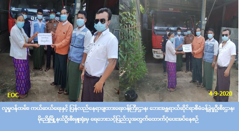 လူမှုဝန်ထမ်း၊ ကယ်ဆယ်ရေးနှင့် ပြန်လည်နေရာချထားရေးဝန်ကြီးဌာန၊ ဘေးအန္တရာယ်ဆိုင်ရာစီမံခန့်ခွဲမှုဦးစီးဌာန၊ ပြည်ခရိုင်ဦးစီးမှူးရုံးမှ တာဝန်ရှိသူများသည် (၃-၉-၂၀၂၀)ရက်နေ့၌ ပြည်ခရိုင်၊ ပေါင်းတည်မြို့နယ်၊ အုတ်ဖို (၂) ရပ်ကွက်တွင် ဖြစ်ပွားခဲ့သော လေဘေးကြောင့် ပြိုလဲနေအိမ် (၂)အိမ်လုံးအတွက် အိမ်ဆောက်ပစ္စည်းဖိုးထောက်ပံ့ငွေ (၂၀၀၀၀၀/-) ကျပ်၊ အိမ်ထောင်စု (၄)စုရှိ လူဦးရေ (၁၉) ဦးအတွက် ဆန်ရိက္ခာဖိုးထောက်ပံ့ငွေ (၃၉၉၀၀/-)ကျပ် စုစုပေါင်းထောက်ပံ့ငွေ ( ၂၃၉၉၀၀/-) ကျပ်နှင့် ကယ်ဆယ်ရေးပစ္စည်း (၁၆)မျိုး (၄) အိမ်ထောင်စုစာတို့အား (၄-၉-၂၀၂၀)ရက်နေ့ နံနက် (၁၀:၀၀) အချိန်တွင် ဘေးသင့်ပြည်သူများ လက်၀ယ်အရောက် … Read more