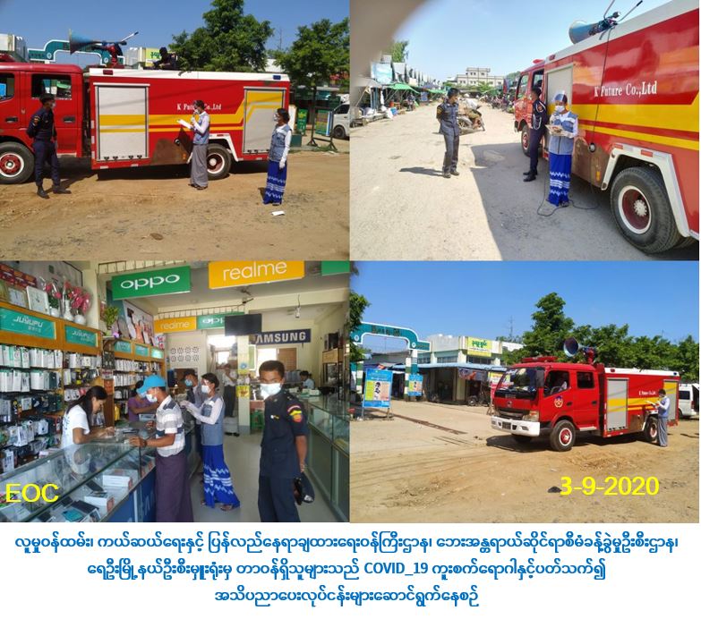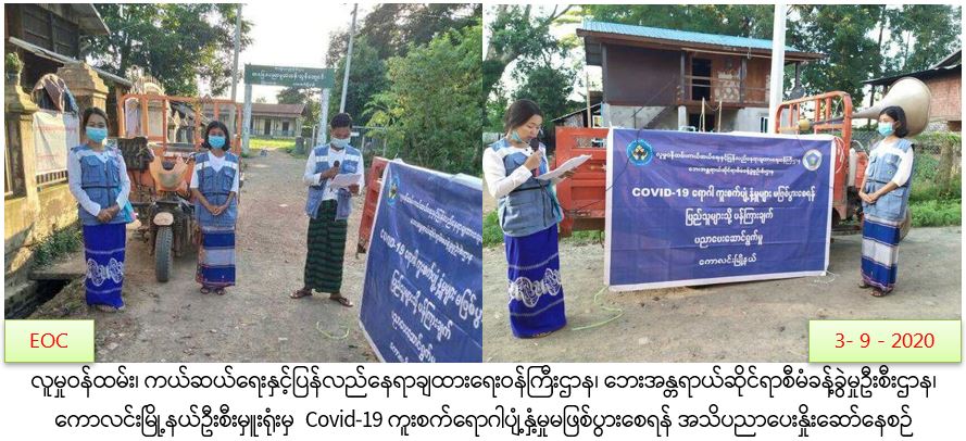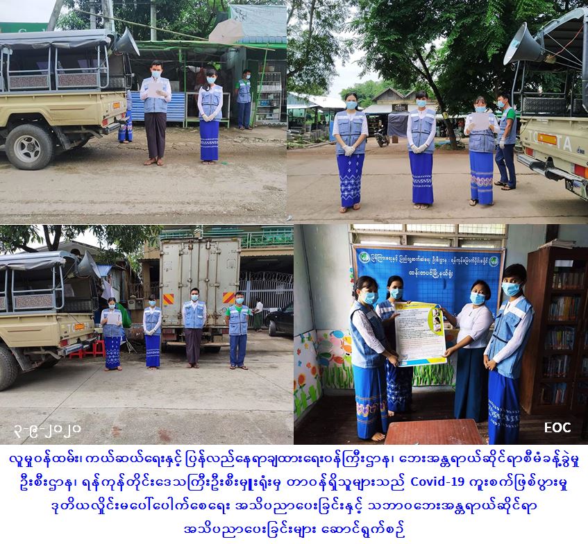 Covid-19 ကူးစက်ရောဂါနှင့်စပ်လျဉ်း၍ အသိပညာပေးခြင်းနှင့် သဘာဝဘေးအန္တရာယ်ဆိုင်ရာ အသိပညာပေးခြင်းများ ဆောင်ရွက်မှုသတင်း
