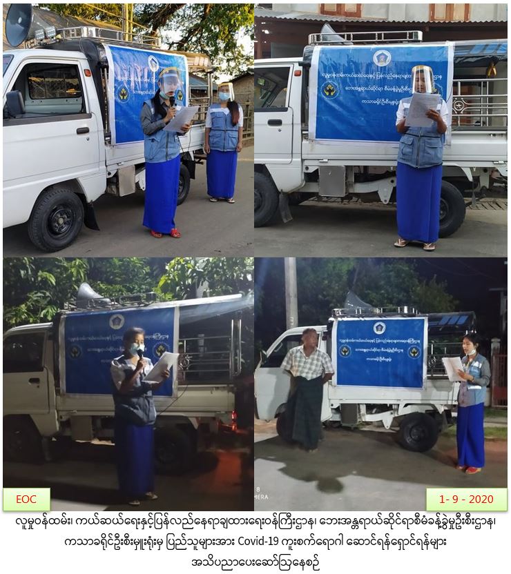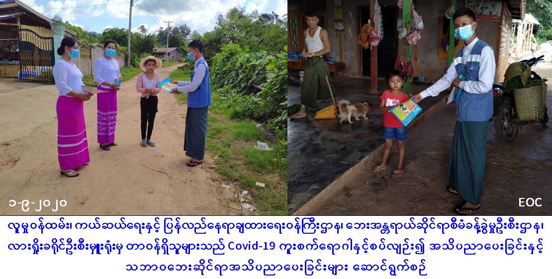 Covid-19 ကူးစက်ရောဂါနှင့်စပ်လျဉ်း၍ အသိပညာပေးခြင်းနှင့် သဘာဝဘေးဆိုင်ရာအသိပညာပေးခြင်းများ ဆောင်ရွက်မှုသတင်း