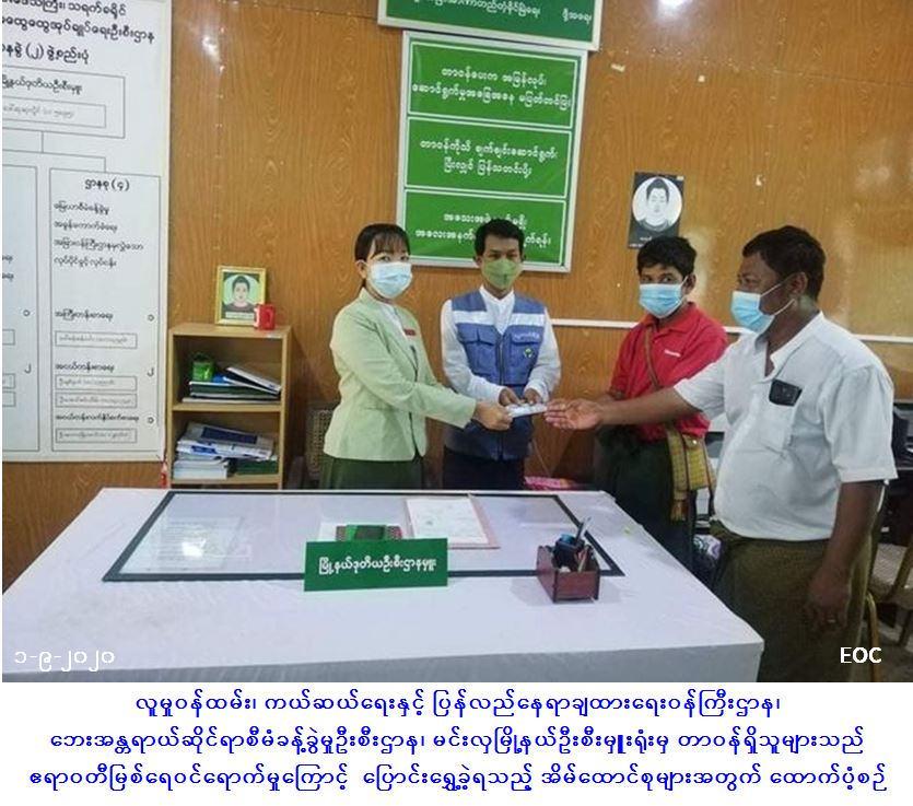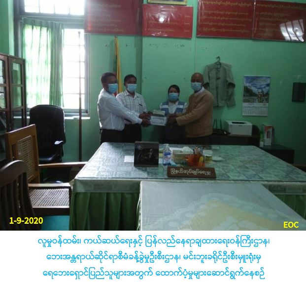 လူမှုဝန်ထမ်း၊ ကယ်ဆယ်ရေးနှင့်ပြန်လည်နေရာချထားရေးဝန်ကြီးဌာန၊ ဘေးအန္တရာယ်ဆိုင်ရာစီမံခန့်ခွဲမှုဦးစီးဌာန၊ ကျောက်ဖြူခရိုင်ဦးစီးမှူးရုံးမှ တာဝန်ရှိသူများသည် ရခိုင်ပြည်နယ်၊ ကျောက်ဖြူမြို့နယ်၊ ကျောက်တစ်လုံး IDP စခန်း၌ နေထိုင်သူများအား COVID-19 စီးပွားရေးကုသမှုအစီအစဥ် ( COVID-19 Economic Relief Plan- CERP)အရ စားသောက်ကုန် (၅)မျိုး(ဆန်၊ဆီ၊ဆား၊ပဲ၊ကြက် သွန်နီ)ဝယ်ယူရန် အိမ်ထောင်စု(၃၆၃)စု၊လူဦးရေ(၁၀၁၀)ဦးတို့အတွက် အိမ်ထောင်စု(၁)စုလျှင်(၄၀၀၀၀/-)ကျပ်နှုန်းဖြင့် စုစုပေါင်းထောက်ပံ့ငွေ (၁၄၅၂၀၀၀၀/-)အား(၁-၉-၂၀၂၀) ရက်နေ့ နေ့လယ် (၁၄း၄၀)အချိန်တွင် ကျောက်ဖြူမြို့နယ်အထွေထွေအုပ်ချုပ်ရေးဦးစီးဌာန၊ မြို့နယ်အုပ်ချုပ်ရေးမှူးနှင့်အတူ IDPစခန်းစီမံခန့်ခွဲမှု ကော်မတီဝင်များထံသို့ လွှဲပြောင်း ထောက်ပံ့ပေးအပ်ခဲ့ကြောင်း သတင်းရရှိပါသည်။ #ar #rke_sep2020 Source: … Read more