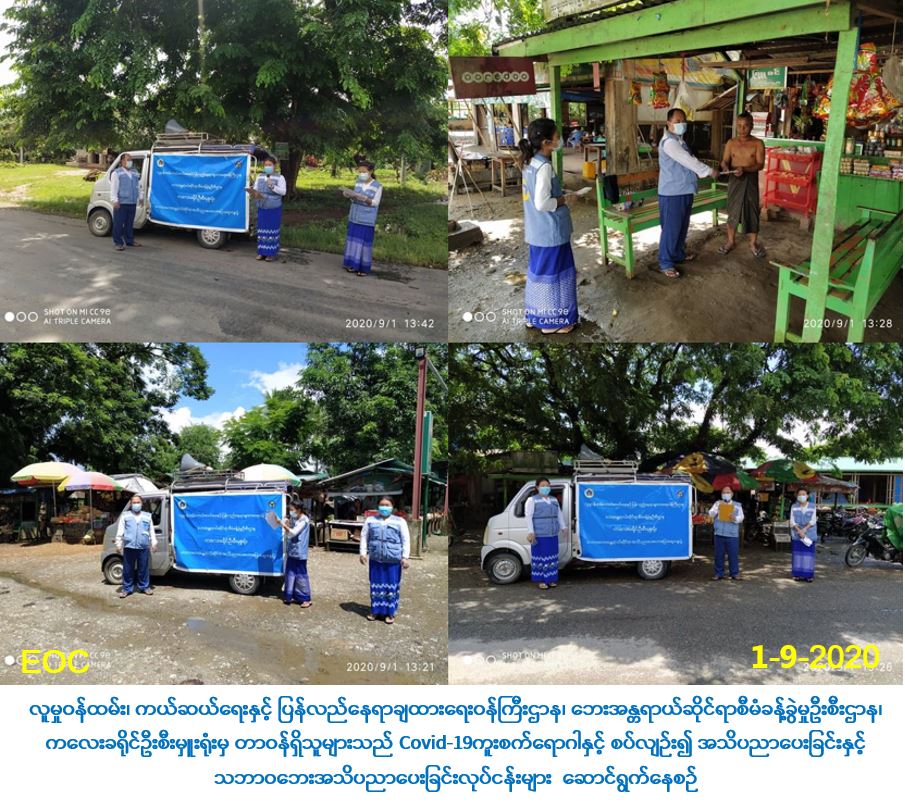 COVID-19 ကူးစက်ရောဂါနှင့်ပတ်သက်၍ အသိပညာပေးခြင်းနှင့် သဘာဝဘေးအန္တရာယ်များနှင့်စပ်လျဉ်း၍ အသိပညာပေးခြင်းများ ဆောင်ရွက်မှုသတင်း