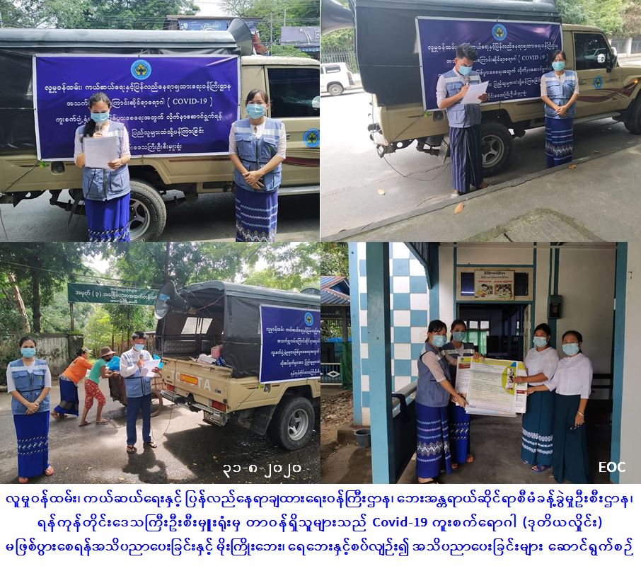 Covid-19ကူးစက်ရောဂါနှင့် စပ်လျဉ်း၍ အသိပညာပေးခြင်းနှင့် သဘာဝဘေးအသိပညာပေး ခြင်းလုပ်ငန်းများ ဆောင်ရွက်မှုသတင်း