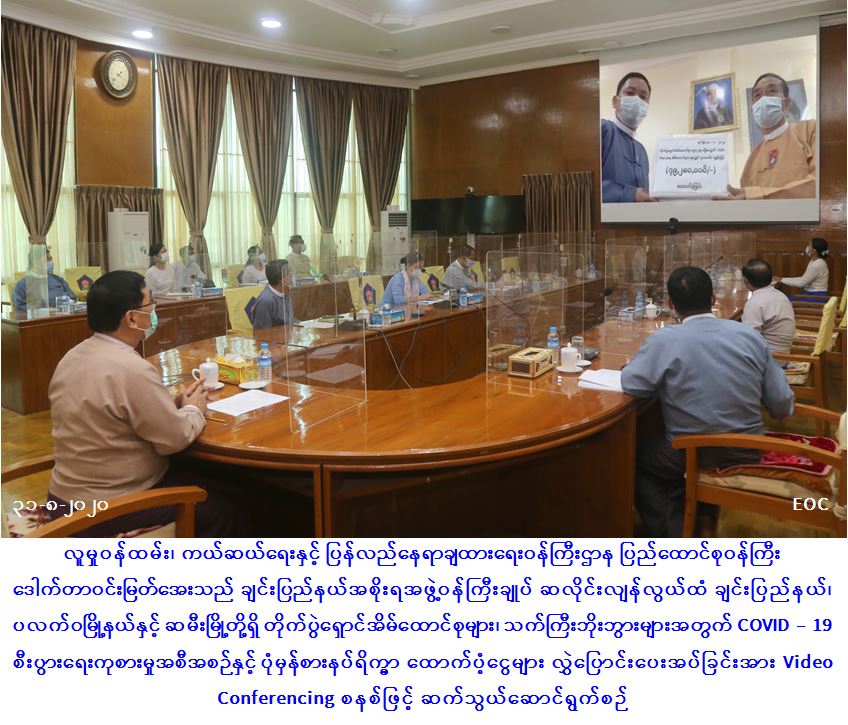~~~~~~~~~ Souce: MOSWRR ~~~~~~~~~ ဩဂုတ် ၃၁၊ နေပြည်တော် ~~~~~~~~~ ချင်းပြည်နယ်၊ ပလက်ဝမြို့နယ်နှင့် ဆမီးမြို့တို့ရှိ တိုက်ပွဲရှောင်အိမ်ထောင်စုများ၊ အသက် (၈၀)နှစ်နှင့်အထက် (၈၅)နှစ်အောက် ဘိုးဘွားများအတွက် COVID – 19 စီးပွားရေး ကုစားမှု အစီအစဉ်အရ ထောက်ပံ့ငွေများ လွှဲပြောင်းပေးအပ်ခြင်းနှင့် ဘေးအန္တရာယ်ဆိုင်ရာစီမံခန့်ခွဲမှုဦးစီးဌာနက ပုံမှန်စားနပ်ရိက္ခာထောက်ပံ့မှုအစီအစဉ်အရ ပလက်ဝမြို့နယ်၊ တိန်းလက်ဝကျေးရွာရှိ တိုက်ပွဲရှောင်သူများအတွက် စားနပ်ရိက္ခာ(၃)လစာ လွှဲပြောင်းပေးအပ်ခြင်းကို လူမှုဝန်ထမ်း၊ ကယ်ဆယ်ရေးနှင့် ပြန်လည်နေရာချထားရေးဝန်ကြီးဌာန ပြည်ထောင်စုဝန်ကြီး ဒေါက်တာဝင်းမြတ်အေးနှင့် ချင်းပြည်နယ်အစိုးရအဖွဲ့ဝန်ကြီးချုပ် ဆလိုင်းလျန်လွယ်တို့က (၃၁-၈-၂၀၂၀) … Read more
