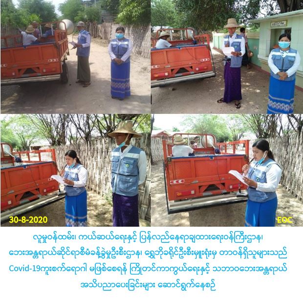 Covid-19ကူးစက်ရောဂါ မဖြစ်စေရန် ကြိုတင်ကာကွယ်ရေးနှင့် သဘာဝဘေးအန္တရာယ် အသိပညာပေးခြင်းများ ဆောင်ရွက်မှု သတင်း